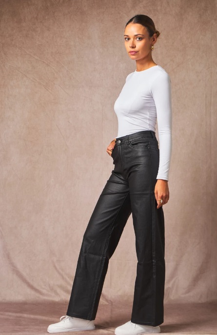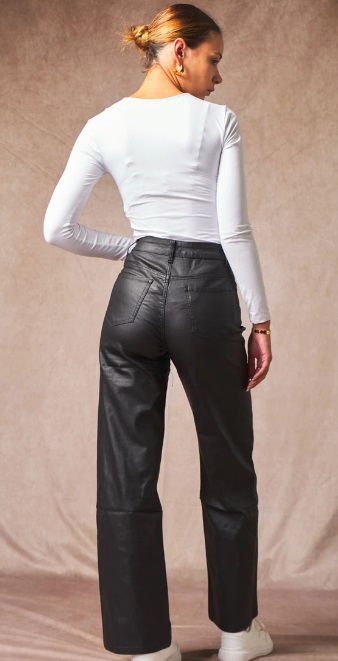 Sa coupe wide leg et sa taille haute subliment la silhouette, tandis que sa matière stretch assure un confort optimal tout au long de la journée.